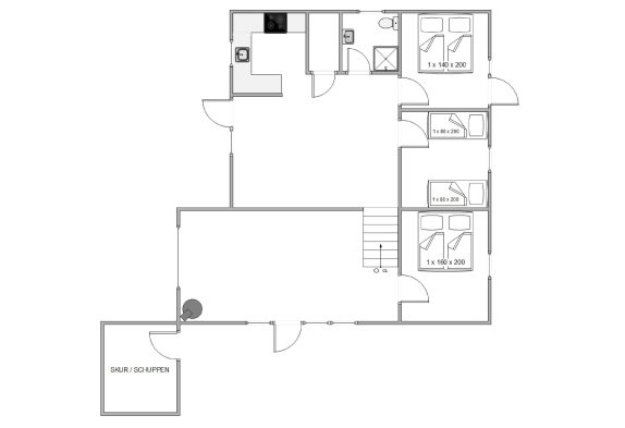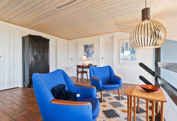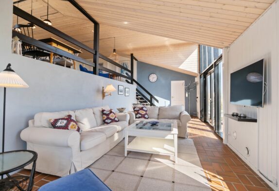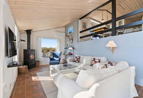 Især stuehjørnet udstråler sommerhusferie i hyggeligste stil, og i de behagelige sofaer kan I slå jer ned med et spil kort og en kop friskbrygget kaffe, eller en god film og en hjemmelavet gang popcorn i de sene aftentimer, med brændeovnens hyggelige knitren i baggrunden og masser af feriestemning i luften.