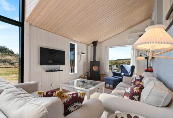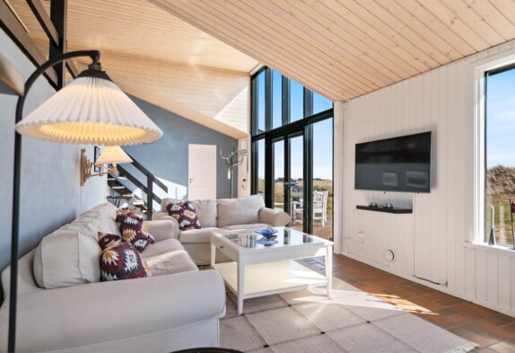 Husets mange store vinduespartier giver jer en fantastisk udsigt ud over klitlandskabet, der omgiver feriehjemmet. Selv på de kolde og regnfulde dage kan I nyde naturen i fulde drag, og med en lynhurtig og stabil internetforbindelse kan I helt gratis streame film på iPad’en og surfe Facebook på en kold efterårsdag.