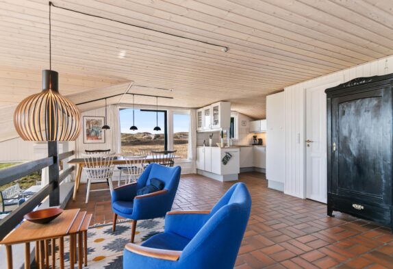 Ud over en fredelig beliggenhed med masser af privatliv, ligger huset kun 150 meter fra havet – så tæt på, at de brusende bølger kan høres helt fra terrassen. Gennem det smukke vestjyske klitlandskab når I den kilometerlange sandstrand, der er perfekt til lange gåture, badeudflugter på varme sommerdage og bare ren afslapning.