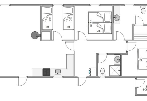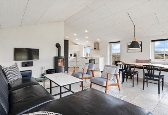 Feriehuset er både lyst og moderne indrettet, og i de indbydende omgivelser vil I fra første ferieøjeblik føle jer godt tilpas. Indretningen er den perfekte kombination mellem det praktiske og de ekstra goder, der sørger for en dejlig ferie. Med plads til 6 personer bliver der hurtigt kø til toilettet, og derfor er huset indrettet med 2 badeværelser med brusebad, så I ikke står i kø, når der skal bades og børstes tænder.