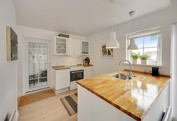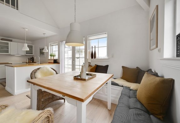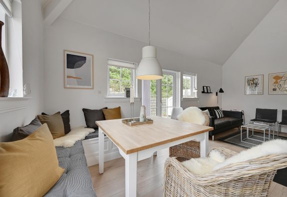 Indvendigt får I en lys og hyggelig ferielejlighed og en fredfyldt atmosfære, som gør, at I med det samme vil falde godt til. Skal I værne lidt ekstra om jer selv og hinanden, kan I tænde for saunaen eller starte spabadet og bruge en aften i ro og fred i varmen. De praktiske opgaver bliver også minimeret, da der både er en opvaskemaskine, vaskemaskine og tørretumbler til rådighed. Heller ingen grund til at bekymre sig om kolde fødder om morgenen, da der er gulvvarme i badeværelset.