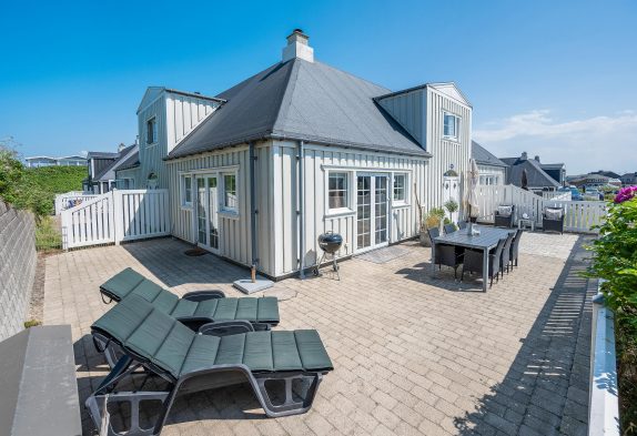 Fra terrassen kan I høre det brusende Vesterhav kalde på jer, og på få minutters gang kommer I til den kilometerlange sandstrand, som i øvrigt er let tilgængelig for alle med den gode strandovergang. Her kan både store og små følge med, og de modige og badeglade feriegæster kan hoppe en tur i bølgerne.