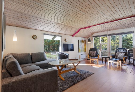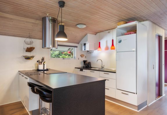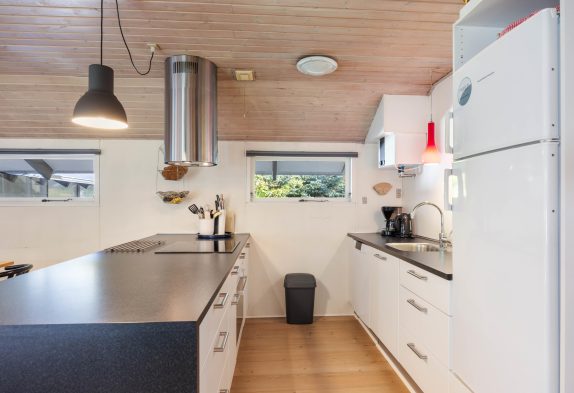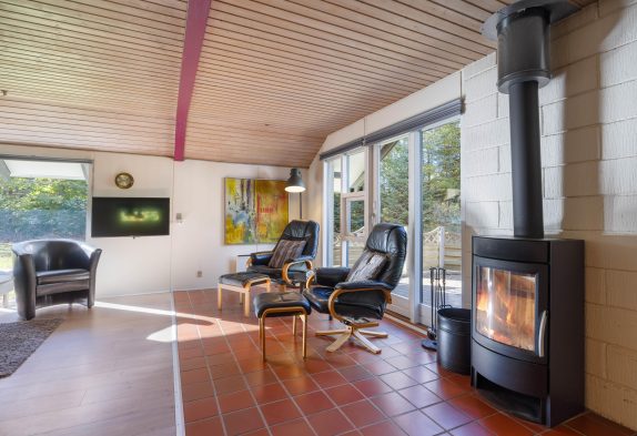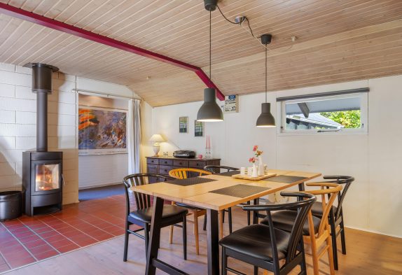 Indenfor byder huset på en både hjemlig og hyggelig indretning, og især i spisestuen med integreret, veludstyret køkken og stort sofahjørne kommer I til at befinde jer godt. Her kommer I helt sikkert til at tilbringe mange gode feriestunder rundt om spisebordet og på sofaen, mens brændeovnens knitrende flammer sørger for varme og feriestemning.