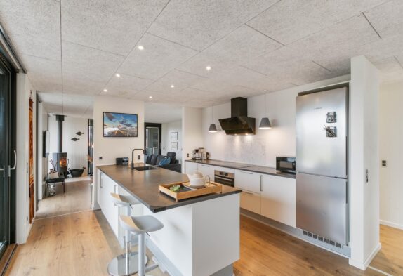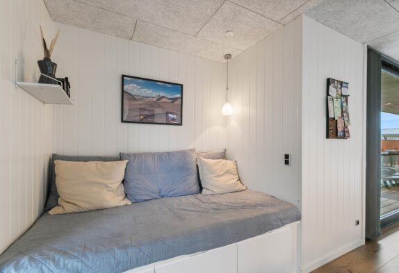 Når der efterfølgende skal slappes af og hygges, bliver alkoven med garanti et af børnenes yndlingssteder, imens de voksne måske vælger at tænde op i feriehusets brændeovn, og derefter sætte sig til rette i sofaen med en god bog og et lækkert glas vin.