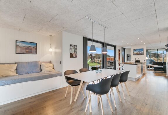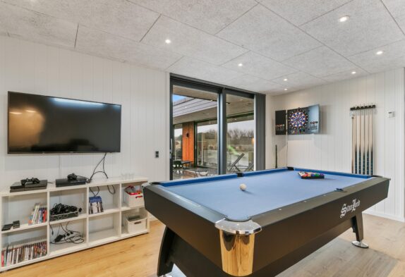 Solvej 28 er et dejligt 152 m2 stort og rummeligt feriehus. Super moderne, smukt og praktisk lever dette stilfulde nybyggede hus nemt op til jeres forventninger. Gode soverum, gulvvarme og moderne badeværelser er en selvfølge i et moderne feriehus, – Særligt lækkert er mulighederne for både wellness og fælles sjov og hygge, da dette sommerhus råder over et stort aktivitetsrum, som indeholder et billiardbord, hvor der også er mulighed for at spille bordtennis med den ekstra plade der kan lægges ovenpå. herudover er der et lækkert, moderne og åbent køkken samt gode fællesarealer.