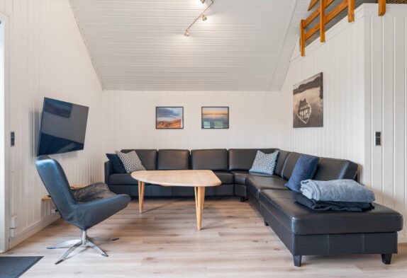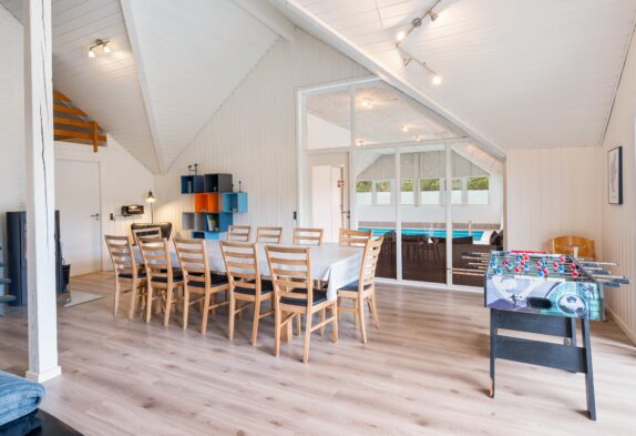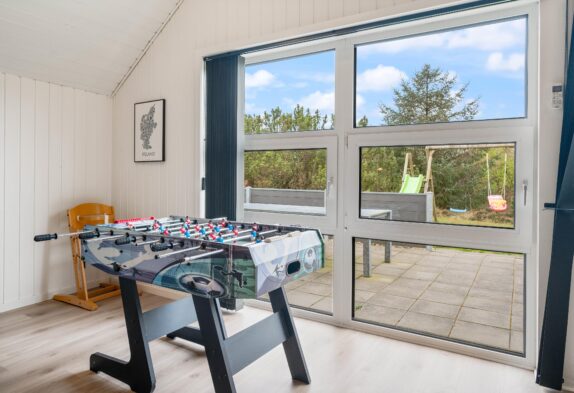 I bliver også mødt af en lys og imødekommende indretning, med stor og rummelig stue, hvor der er brændeovn og bordfodboldbord. Feriehuset giver jer virkelig plads til indendørs aktiviteter, samt hygge og afslapning ved brændeovnen. For ungerne er her også en hems, som giver plads til afslapning og hygge med spil.