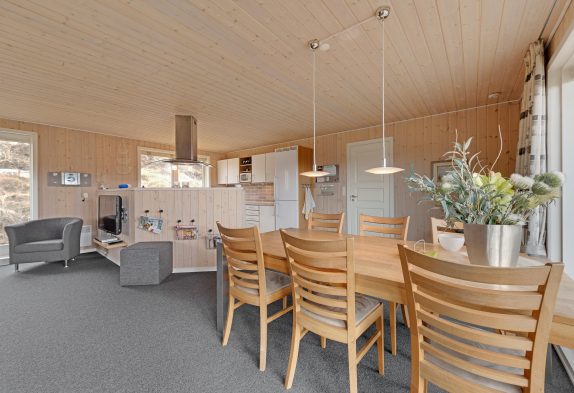 Allerede ved første indtræden i dette lyse hus vil I kunne mærke, hvordan feriestemningen sænker sig over jer. Den gode indretning med praktisk udstyr såsom opvaskemaskine, tørretumbler og vaskemaskine gør ferien så ubesværet som muligt, og de hyggelige omgivelser sætter rammerne for en dejlig ferie med masser af nye ferieminder til samlingen. Den centralt placerede klassiske brændeovn vil helt sikkert sprede god varme og sørge for ekstra hyggestemning på de kølige dage.