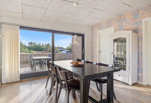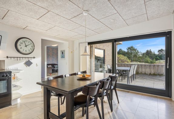 Den store terrasse er delvist overdækket og helt afskærmet, så der rundt om feriehuset findes mange gode lækroge, hvor I altid kan finde et roligt sted at nyde den storslåede natur, den friske luft og solens stråler. Sommerhuset ligger kun ca. 900 meter fra en af Danmarks bedste badestrande og ca. 300 meter fra den lokale, velassorterede købmand.