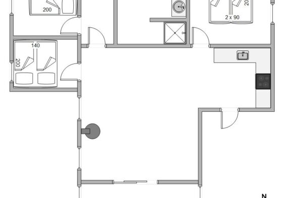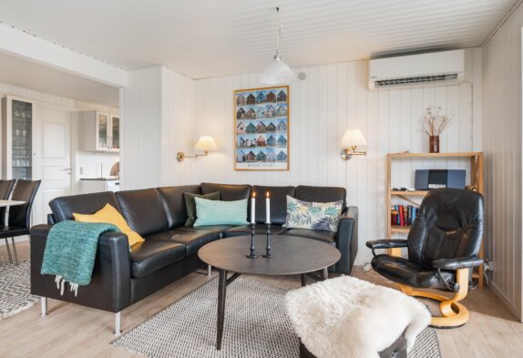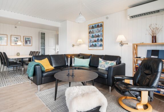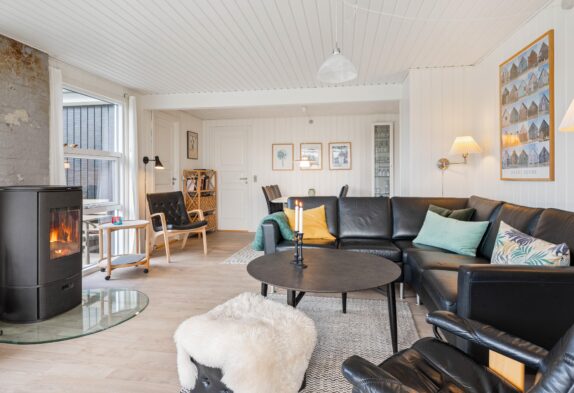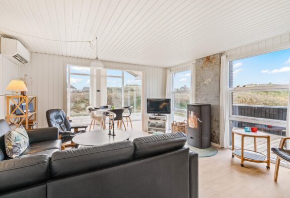 Feriehuset er også udstyret med en brændeovn, som til hver en tid vil gøre ferien endnu hyggeligere. Især i de kolde vintermåneder vil de knitrende flammer fylde rummet med varme og feriestemning, mens I drikker en friskbrygget kop kaffe rundt om sofabordet.