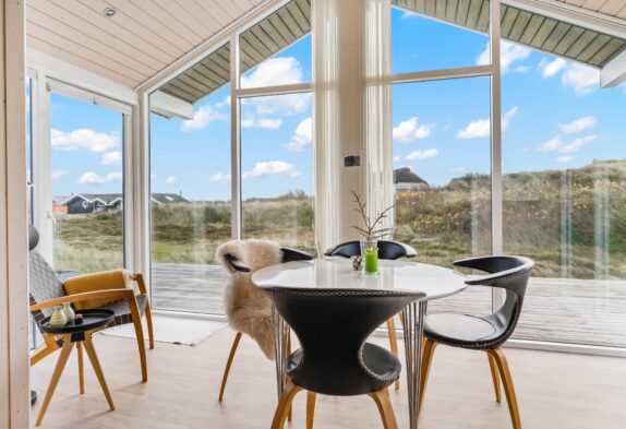 Fra terrassen kan I næsten høre bølgernes brusen, og den brede sandstrand ligger blot 450 meter væk. Stranden er et paradis for både store, små og hunde – og mon ikke, der bliver tid til et strandbesøg eller to i løbet af ferien?