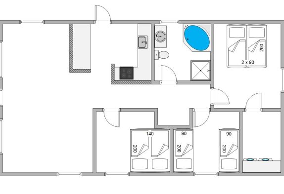 Det lyse badeværelse er udstyret med spa og gulvvarme. Huset byder på gratis opkobling til det trådløse internet. Her er tre gode soveværelser med trægulve og komfortable senge til 6 personer.