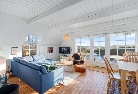 Charmerende helårsisoleret feriehus på stor klitgrund på vestkysten, totalrenoveret 2010. Huset har en skøn og rolig beliggenhed tæt på stort hede- og klitområde, og en stor, læfyldte terrasse, hvor man helt ugeneret kan nyde den smukke natur og den friske luft. Indenfor finder I et lyst og venligt indrettet sommerhus med blandt andet badeværelse med spa!