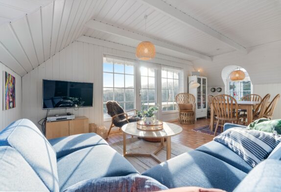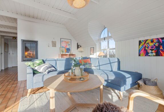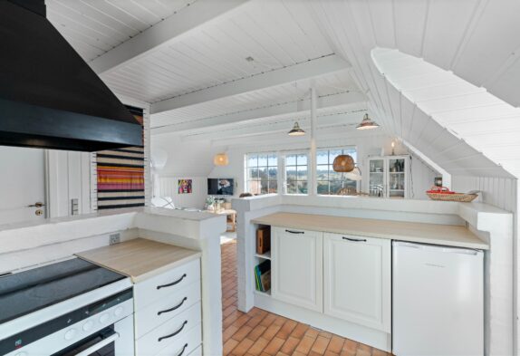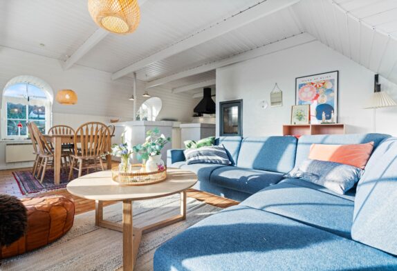 På Bilbergsvej 81 føler man sig straks velkommen og veltilpas i det store rum, hvor det lyse køkken er adskilt fra spiseafdelingen og den hyggelige, godt møblerede opholdsafdeling af en halvmur. Hele denne del af huset har et flot klinkegulv med gulvvarme. Der er også Chrome-tv, så I kan streame film og serier alt det, I har lyst til.