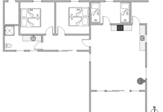 De tre gode soveværelser byder på komfortable boxmadrasser, hvoraf der er 2 dobbeltsenge. Det sidste værelse er indrettet med 2 gode enkeltsenge. Badeværelset er med bruser og gulvvarme, så I ikke fryser om tæerne.