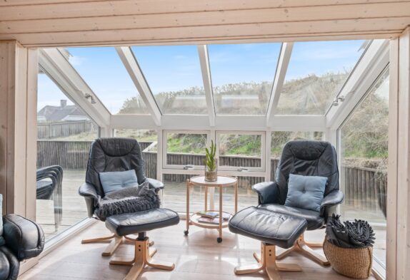 Sommerhuset på Bjerregårdsvej er beliggende på en stor naturgrund og omringet af marehalm, som er Vestkystens kendetegn. Der er en rigtig god lukket terrasse til huset, der strækker sig fra øst over syd og slutter mod vest. Den er derfor særdeles velegnet dagen lang. Mod vest er terrassen delvist overdækket og delvist afskærmet, hvilket gør den ideel til hyggelige grillaftener. Hele terrassen er perfekt for familier med børn eller hund. På naturgrunden uden for terrassen er der en dejlig sandkasse til de yngste feriegæster, så de også kan bruge en masse energi i naturen.