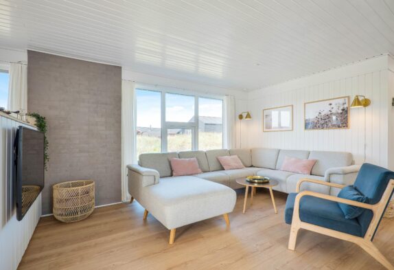 Det renoverede sommerhus på Bjerregårdsvej 369 fremstår utrolig velholdt, og I vil hurtigt falde til i de indbydende omgivelser, hvor lyse farver og hyggeligt interiør fungerer som rød tråd i alle ferieboligens rum.