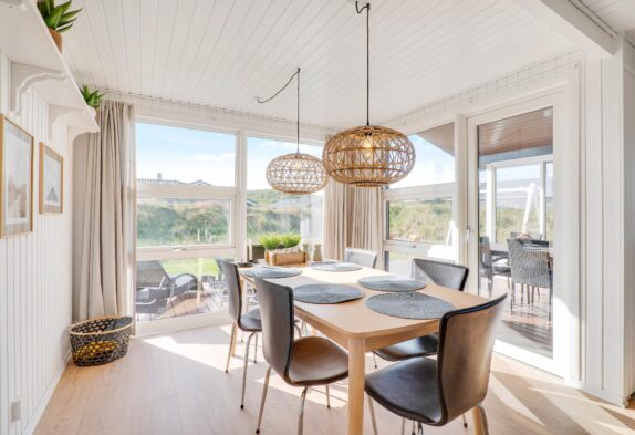 Sommerhuset er udstyret med 2 rigtig gode terrasser, den ene delvist overdækket, hvor I kan nyde solen og den skønne vestjyske natur. Der er selvfølgelig sørget for gode havemøbler, liggestole, strandstole og en god grill, så I rigtigt kan udnytte de solrige dage. Derudover er der et bålsted på naturgrunden, hvor I kan skrue op for lejrbåls-stemningen i den lune aftensol med snobrød og skumfiduser. Til de yngste feriegæster findes der både gynger og sandkasse.