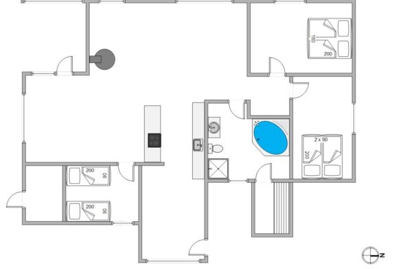 Feriehuset har plads til 6 personer i 3 bekvemme soverum. I det store wellnessbadeværelse finder I både et afstressende spabad og en dejlig sauna, hvor I kan få varmen efter en forfriskende gåtur i den salte havluft.