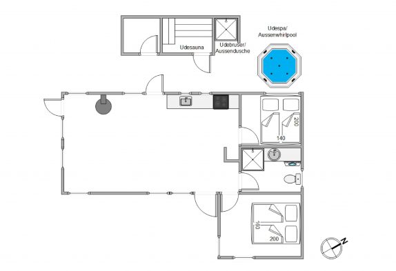 Her bor I så tæt på havet, at I blot behøver smide håndklædet over skulderen og smutte ned over klitterne for at få en morgendukkert. Og holder I ferie i den koldere årstid, så har I jo muligheden for at tænde op i husets sauna og efterfølgende lade jer varme godt igennem.– En særlig facilitet ved huset og skøn oplevelse er at tænde op i den udendørs spa, og sidde og slappe af i det skønne varme vand under åben himmel – måske læne sig tilbage og på en skyfri aften tælle stjernerne?