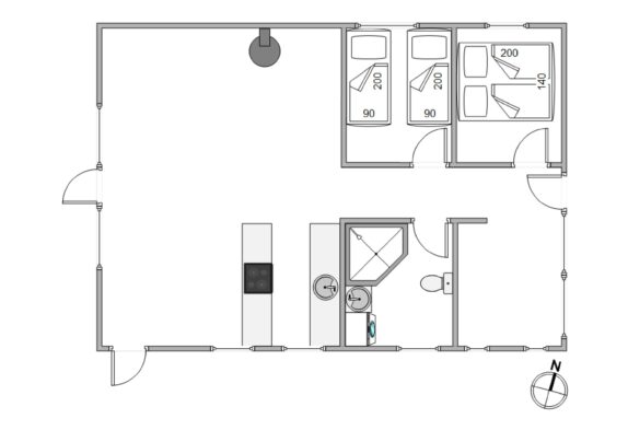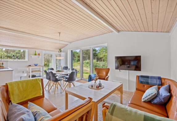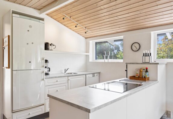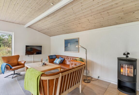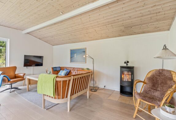 Sommerhuset byder på 80m2, der omhyggeligt er indrettet for at give jer maksimal komfort og hygge. Her er to hyggelige soverum, der indeholder en dobbeltseng og to enkeltsenge, og derved sikrer god nattesøvn uanset fordelingen. I kan nyde den hjemlige atmosfære i stuen, hvor en brændeovn skaber varme og hygge på køligere aftener. Sommerhuset er også udstyret med en opvaskemaskine og vaskemaskine, så I kan nyde mere tid sammen uden at tænke på praktiske gøremål.
