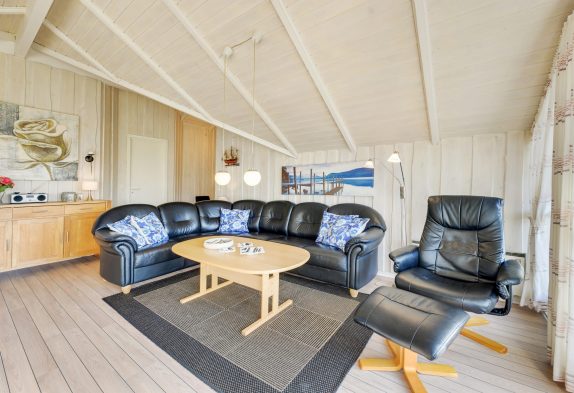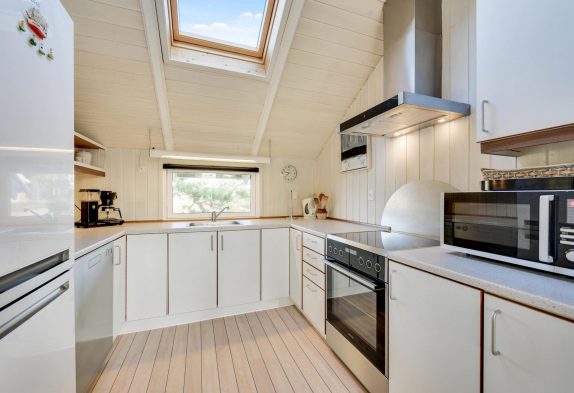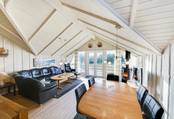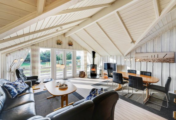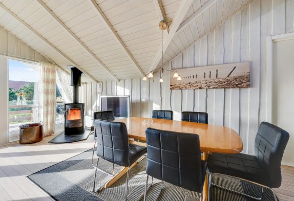 Køkkenet ligger i åben forbindelse med stuen, hvor hele familien kan samles. Her er der danske tv-kanaler og en brændeovn, som spreder varme og gør ferien ekstra hyggelig.