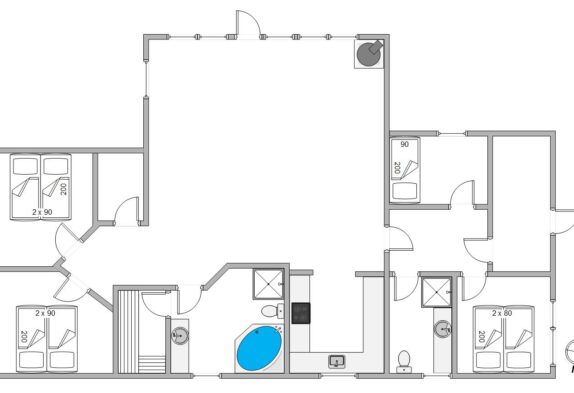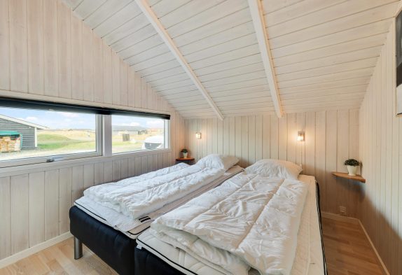 Dette feriehus er, hvad man forbinder med et rigtigt sommerhus. Her er plads til 7 personer på de i alt 4 soveværelser. På 3 af værelserne er der dobbeltsenge, og det sidste værelse er indrettet med en enkeltseng. Alle værelser har trægulve og loft til kip.