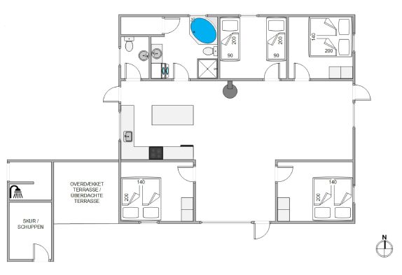 Når op til 8 personer vil holde ferie sammen, er det vigtigt, at der ikke opstår badeværelseskø. På Sand Holms Vej 1 har I ved siden af det store lækre badeværelse med egen spa naturligvis et ekstra gæste-wc. Det er helt uden bekymringer, I efter en lang dag med frisk vesterhavsluft kan fylder spaen op og lade jer glide ned i det varme vand. Her kan I slappe fuldstændigt af og bare nyde at have rigtig ferie.
