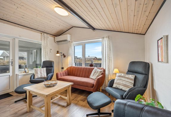 De op til 5 feriegæster kan fordele sig på 3 værelser, hvoraf 2 er indrettet med senge på 140 cm. På det sidste værelse finder I en komfortabel enkeltseng til en god nats søvn, så batterierne kan lades op til morgendagens ferieaktiviteter.