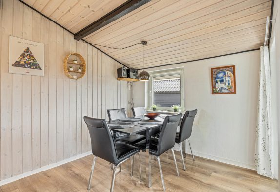 Sommerhuset er hyggeligt indrettet med lyse rum. Køkkenet er i åben forbindelse med spiseafdelingen. I opholdsafdelingen findes både brændeovn, fladskærmsTV/parabol, DVD og CD-radio.