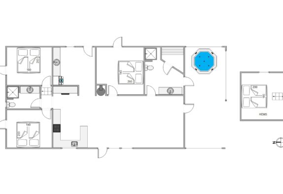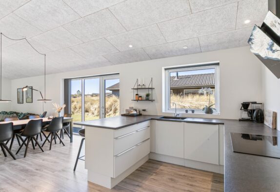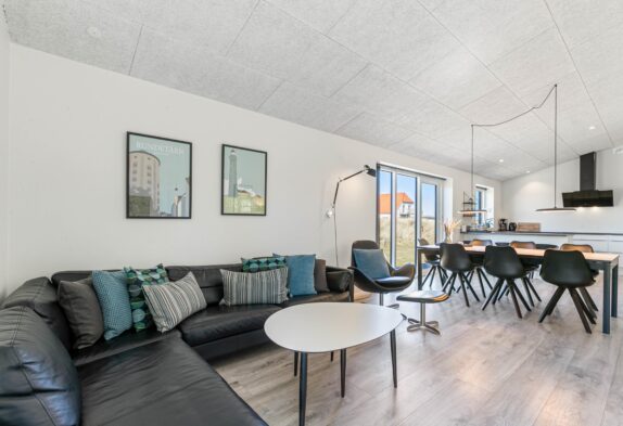 Det flotte feriehus rummer alt, hvad feriehjertet begærer. I kommer ikke til at mangle noget på de 125 kvadratmeter, der rummer plads til i alt 8 personer. Lodbergsvej 64 er lyst og lækkert fra top til tå med hvide vægge, troltekte lofter og kvalitetsbevidst interiør. Feriehuset består af 3 soveværelser med dobbeltsenge. Derudover er der en dobbeltseng at finde på hemsen, som familiens yngste medlemmer helt sikkert vil synes godt om.