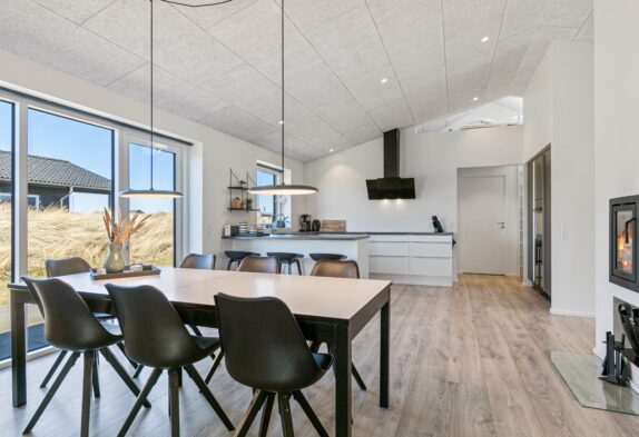 På Lodbergsvej 64 i Søndervig ligger dette standnære feriehus – klar til at give jer en ferie ud over det sædvanlige. Her får I et stilfuldt indre med moderne møblement, sauna og et tilsvarende lækkert ydre med overdækket terrasse og udespa.