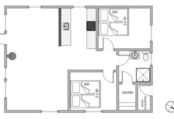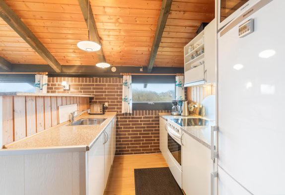 En personlig indretning med åbent alrum venter jer i sommerhuset, hvor både brændeovn og Chromecast står til jeres rådighed. Her kan I holde en afslappende ferie for 4 personer i 2 komfortable dobbeltværelser. Sengene er elevationssenge, og så er der desuden et ekstra TV på det ene soveværelse.