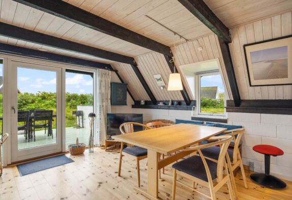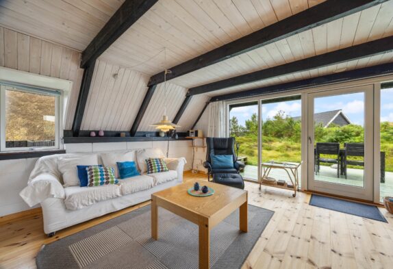 Feriehuset ligger på en stor naturgrund med buske og fyrretræer lige op ad et stort fredet hedeområde, hvor den enestående vestjyske natur kan nydes på traveturene, som også skal gå til det imponerende Vesterhav eller den idylliske Ringkøbing Fjord. Vesterhavet ligger blot 400 meter herfra.