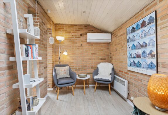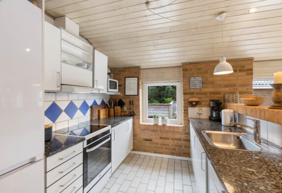 Sommerhuset på Humlegårdsvej 30 B rummer 4 soverum samt et køkken i forbindelse med den store stue, hvor der er plads til hele familien i de komfortable møbler foran feriehusets brændeovn. Her kan I koble jeres mobil til sommerhusets chromecast og derved streame lige, hvad I har lyst til.