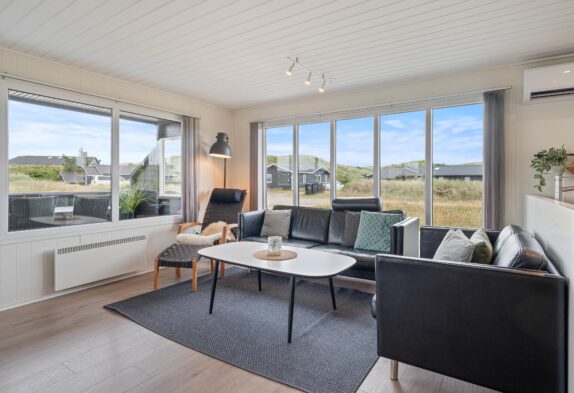Den lukkede terrasse ved sommerhuset er ideel til småbørnsfamilier, eller hvis du har hund med. Her kan I slappe af i de komfortable liggestole eller hygge jer sammen i havemøblerne. Der er gode kroge, så I kan finde skygge eller læ, når I har brug for det. Med kun 200 meter til Vesterhavet, må I naturligvis også besøge den kilometerlange sandstrand og måske dyppe tæerne i det brusende Vesterhav.