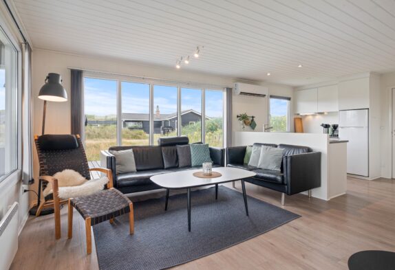 I det hyggelige sommerhus på Bjerregårdsvej 365 kan op til 5 personer holde en dejlig vesterhavsferie sammen. Med kun 200 meter til Vesterhavet er det oplagt at udnytte muligheden for vandreture langs stranden i den friske luft – hunden er også velkommen. Med et godt lysindfald, brændeovn og sauna kan I her nyde tilværelsen indendørs såvel som udendørs. Den lukkede terrasse med de gode kroge giver god plads til læ eller solbadning. Ideelt til småbørnsfamilien eller hunde. Ladestik til elbil vil I også finde her.