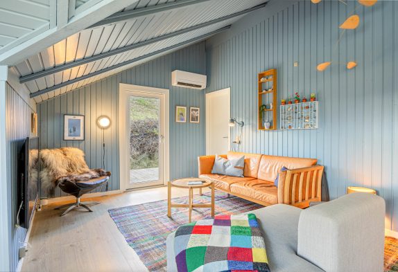 Køkkenet er godt udstyret og har både mikrobølgeovn, opvaskemaskine og fryser. Efter en frisk gåtur ved stranden kan I varme jer ved brændeovnen i stuen, som er sammenhængende med køkkenet. Desuden kan I bruge internettet i sommerhuset gratis eller hygge jer med en film på fjernsynet, som også har danske kanaler. På badeværelset er der gulvvarme, og her bliver I mødt af samme fine stil og afdæmpede farver, som i resten af sommerhuset.