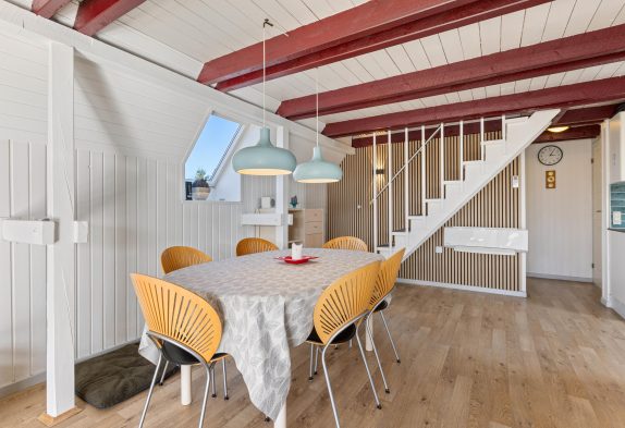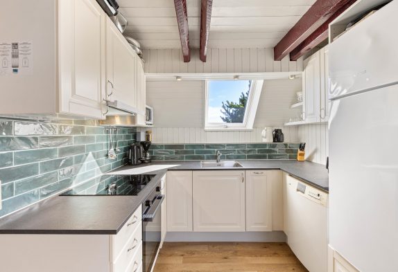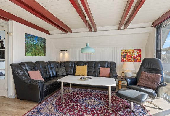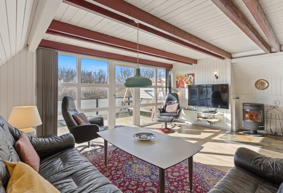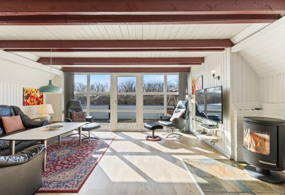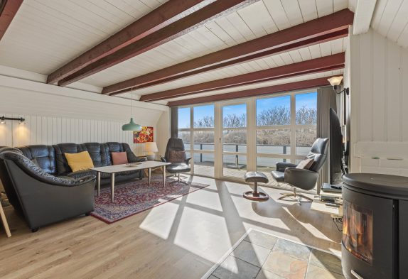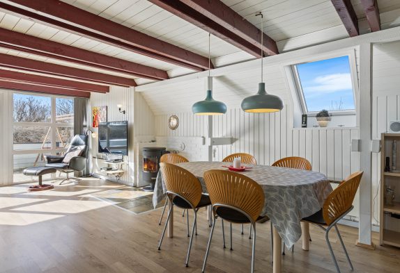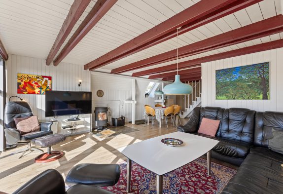 Indenfor byder sommerhuset på et lyst og indbydende miljø, der skaber de perfekte rammer for hyggelige stunder sammen. Stuen er hjertet i sommerhuset, hvor den varme brændeovn bidrager til en behagelig atmosfære, især på kølige aftener.