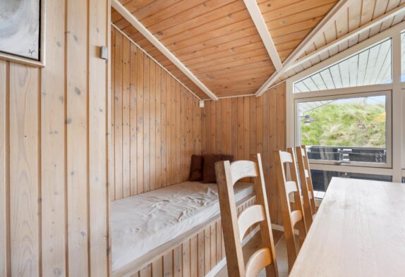I dette sommerhus blev der også tænkt på børnene, da det blev indrettet. Derfor har det ene soverum to køjesenge, så det er sikkert det værelse, børnene gerne vil råde over.