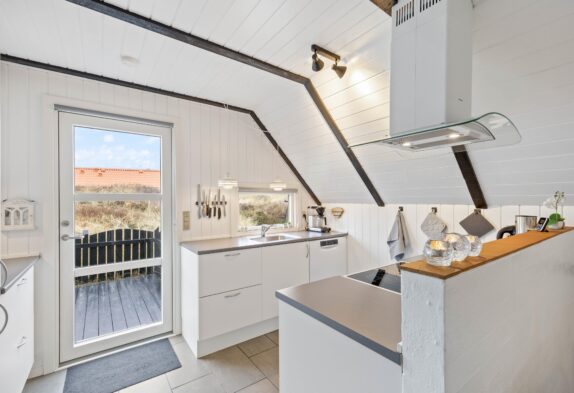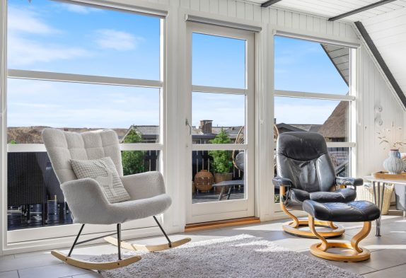 Der er to gode terrasser til feriehuset. Fra den lukkede terrasse mod vest, kan I nyde den smukke udsigt over klitlandskabet, og I kan tydeligt høre Vesterhavets brusen.