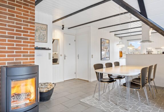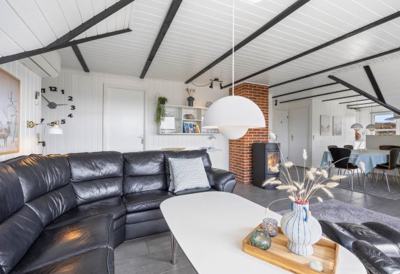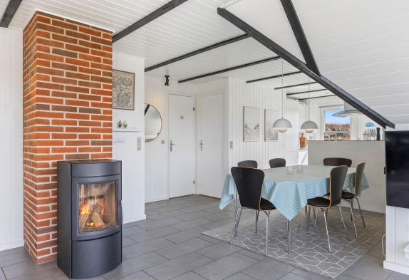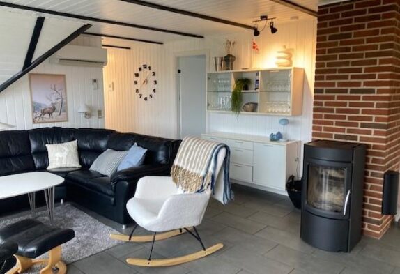 I stuen er der en flot brændeovn, som er placeret så godt, at den spreder varme og hygge i hele stuen. Der er også et fladskærms-TV, en parabol, en radio m/CD-afspiller og gratis trådløst internet. Sommerhuset her en energibesparende luft-til-luft varmepumpe, hvilket gør feriehuset til et ideelt feriested også i den koldere årstid.