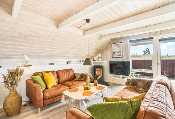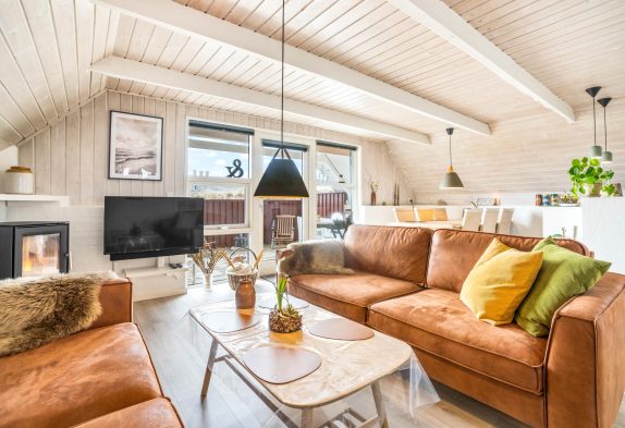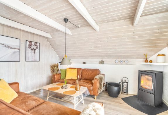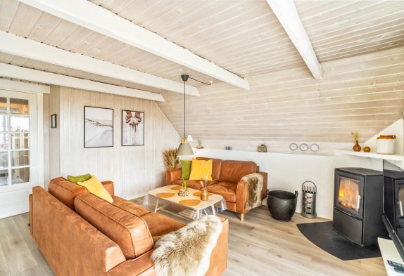 Det nye køkken er fra 2023 er udstyret med alt, hvad I har brug for til madlavningen, og opvaskemaskinen tager sig af det praktiske arbejde efterfølgende. Dermed kan hele familien sætte sig til rette i sofaen foran brændeovnen, som omfavner jer med sin hyggelige varme, mens I ser jeres yndlingsfilm via Chromecast.