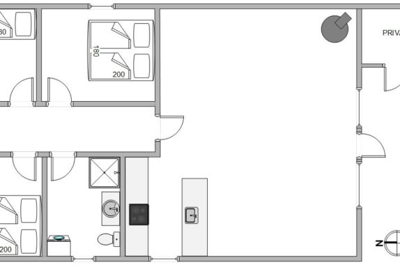 De 3 soveværelser er komfortabelt indrettet, i 2 af soveværelserne finder I dobbeltsenge (140x200cm og 180x200cm). Det 3. soveværelse tilbyder en enkeltseng på 90x180cm. Badeværelset med gulvvarme er moderne og lyst og med håndklædetørre. Som praktisk ekstraudstyr er der installeret en vaskemaskine, så I altid har nyvaskede håndklæder til jeres kommende strandtur.