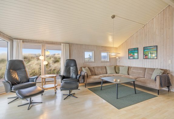 Vesterhavet og den flotte sandstrand ligger kun 450 meter fra feriehuset, som hele året rundt er en smuk naturoplevelse. Så nyd de lange gåture med vind i håret og lyden af bølgernes brusen, mens hundene løber og leger.