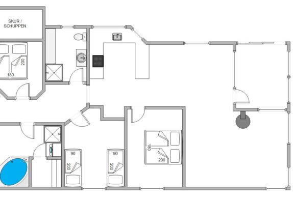 Det ene af de to dejlige badeværelser er med spabad og sauna, hvor du rigtig kan slappe af efter en tur ved stranden. Og i feriehuset er der både vaskemaskine og tørretumbler til rådighed, så du ikke behøver at medbringe den helt store tøjkuffert.