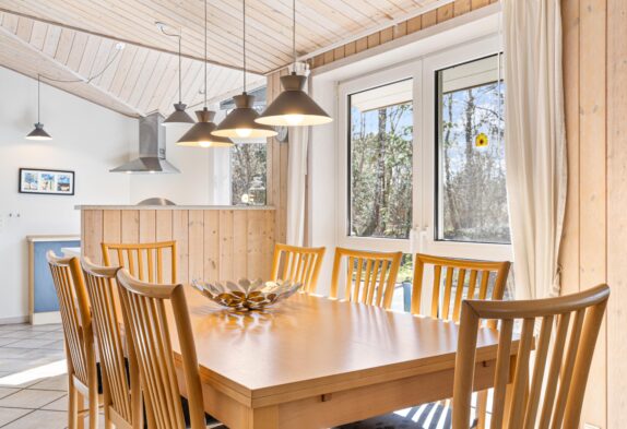 Feriehuset har med sine 120 kvadratmeter plads til op til 8 personer, og med sin lyse og indbydende indretning er rammerne sat for en afslappende familieferie i hyggelige og naturskønne omgivelser.