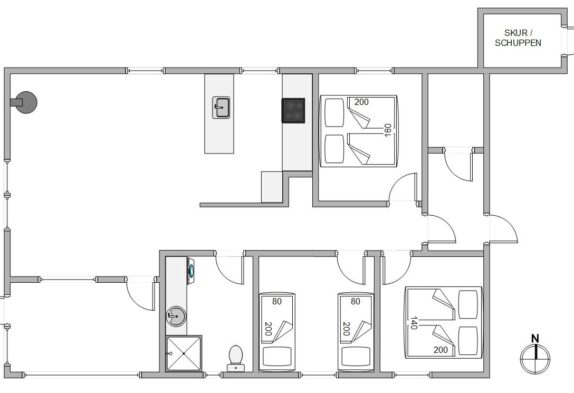 Det åbne køkken giver mulighed for, at hele familien kan være samlet – også mens der laves mad. I stuen kan I slå jer ned med en god film eller finde brætspillene frem til en hyggelig aften.