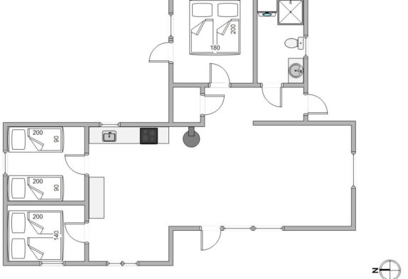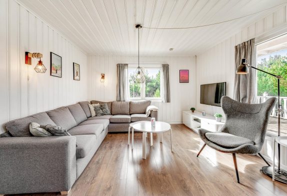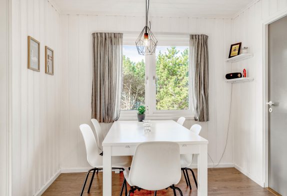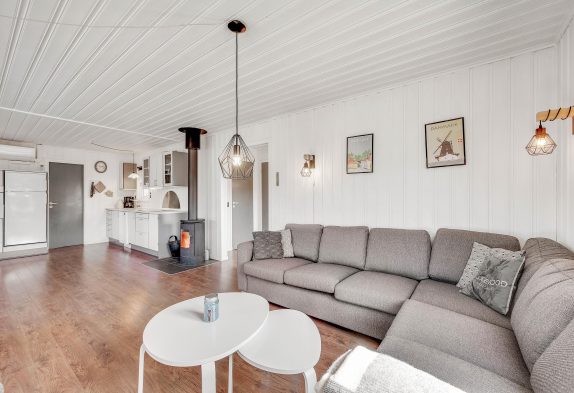 Der er plads til op til 6 feriegæster i dette sommerhus, som emmer af hygge og feriestemning. Her er et fint køkken, der er åbent forbundet med den lyse og rummelige stue. Her kan du tilbringe lidt kvalitetstid med familien omkring fælles madlavning, sjove spil eller en god film – og på de køligere dage kan du tænde op i brændeovnen, der giver en ekstra hyggelig atmosfære. Desuden er der en varmepumpe i sommerhuset.
