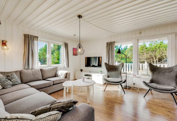 På Humlegårdsvej 26 ligger dette hyggelige feriehus med rolig beliggenhed på en naturgrund afskærmet af små buske og fyrretræer. Feriehuset ligger i gåafstand fra købmanden og store skønne naturområder; både hede og strand. En stor lukket terrasse giver masser af ro og tryghed, når du ferierer med små børn – desuden er grunden perfekt til leg med både gynger og sandkasse.