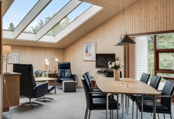 Det 105 kvadratmeter store feriehus på Gulspurvevej 4 er det perfekte valg til familien. Det velindrettede hus rummer god plads til 6 personer, og indretningen er enkel og hyggelig med varme træfarver og masser af lys fra de store vinduer og ovenlysvinduer.